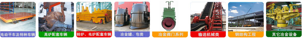 公司產(chǎn)品有ZT系列鐵水罐車(chē)、鋼包車(chē)、渣罐車(chē)、渣盤(pán)車(chē)、電動(dòng)平車(chē)、過(guò)跨車(chē)、鐵水稱量車(chē)、液壓傾翻車(chē)、廢鋼料籃車(chē)、中間罐車(chē)、修爐車(chē)、爐底車(chē)、鎳鐵礦熱爐料罐車(chē)、汽運(yùn)鐵水車(chē)以及各種鐵水罐(包)、鋼水包(罐)、渣罐、渣盤(pán)、中間罐、鋼包加蓋、龍門(mén)吊鉤、鋼包傾翻機(jī)、鋼包回轉(zhuǎn)臺(tái)等產(chǎn)品。